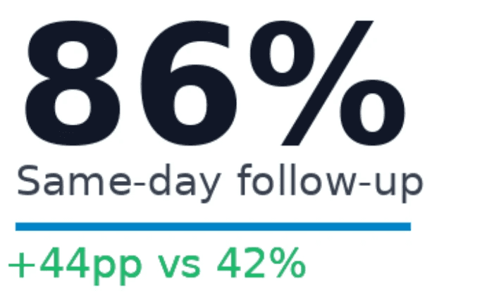 Same-day follow ups (typical customers move from ~40% → 80%+)